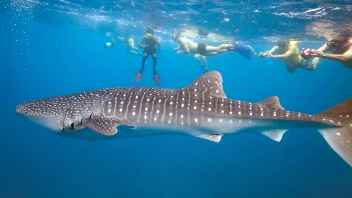 Whale Sharks are filter-feeders that travel the world’s warm oceans. They are usually solo, but in areas where food is concentrated, Whale Sharks gather in large numbers.